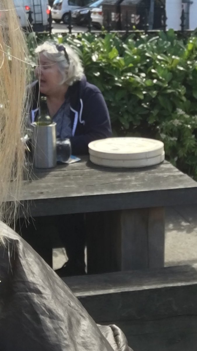 I pretended to take a selfie so I could document how causally this woman is carting around an entire wheel of Briepic.twitter.com/oDiNftsl6m