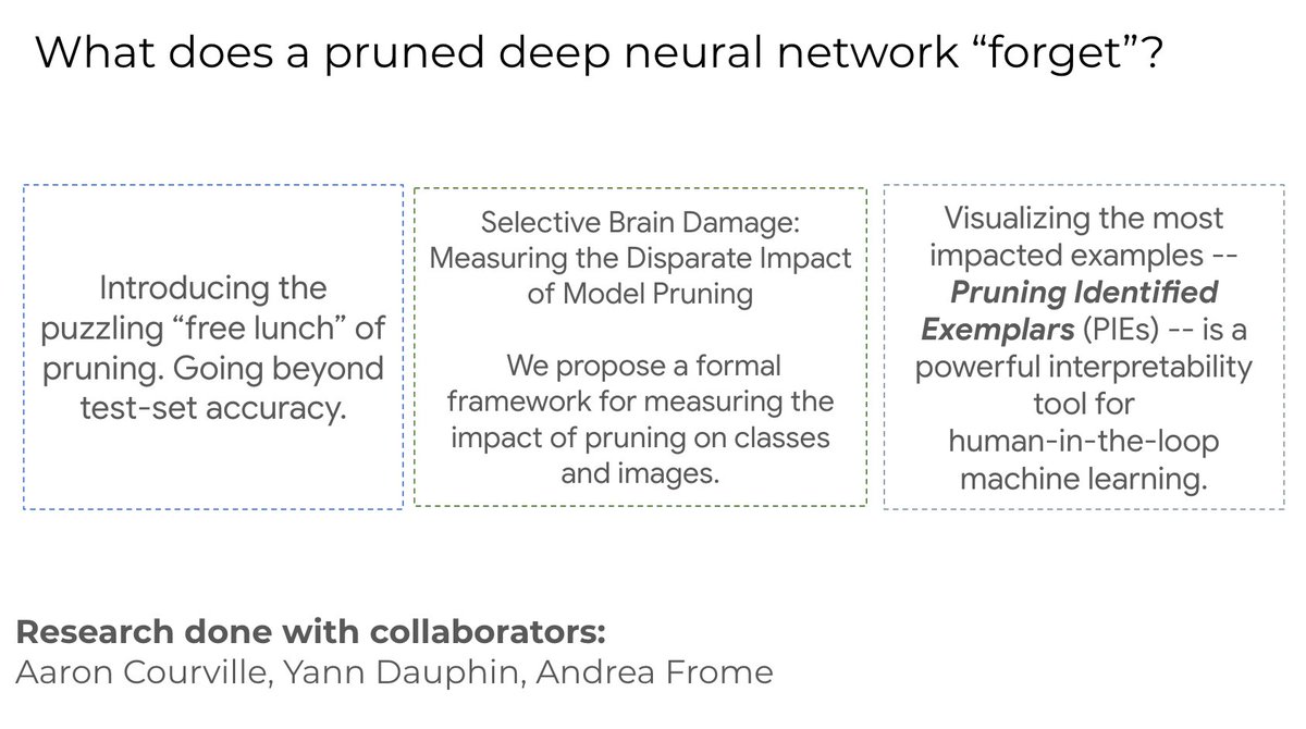 #reworkDL last week about recent work w colleagues "What does a deep neural network "forget"?" Leveraging deep neural network pruning as mechanism to surface challenging exemplars and detect model bias. Slides here: https://bit.ly/2vEvTHQ pic.twitter.com/pHgr86UZ1M