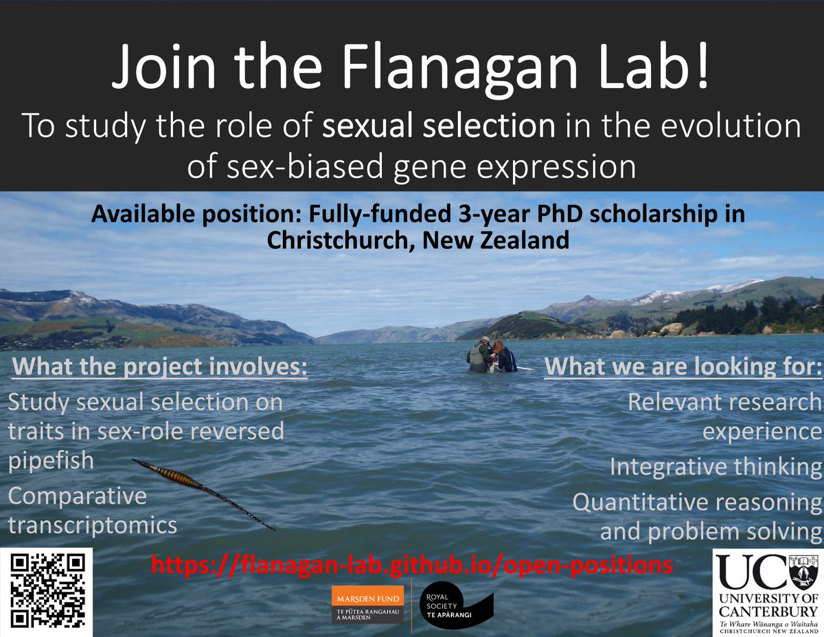 @BBM_Wong, and@judithmank on sexual selection and sex-biased gene expression in pipefish in New Zealand & Australia! https://flanagan-lab.github.io/open-positions/ The fish are beautiful, as are the field sites. Please RT!pic.twitter.com/ddwQg8OeWB