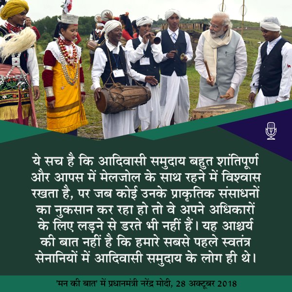 आज सारा विश्व पर्यावरण संरक्षण की चर्चा कर रहे हैं और संतुलित जीवनशैली के लिए नए रास्ते ढूंढ रहे हैं | प्रकृति के साथ सामंजस्य बनाकर के रहना हमारे आदिवासी समुदायों की संस्कृति में शामिल रहा है हमारे आदिवासी भाई-बहन पेड़-पौधों और फूलों की पूजा देवी-देवताओं की तरह करते हैं : PM pic.twitter.com/updxxuAaZc