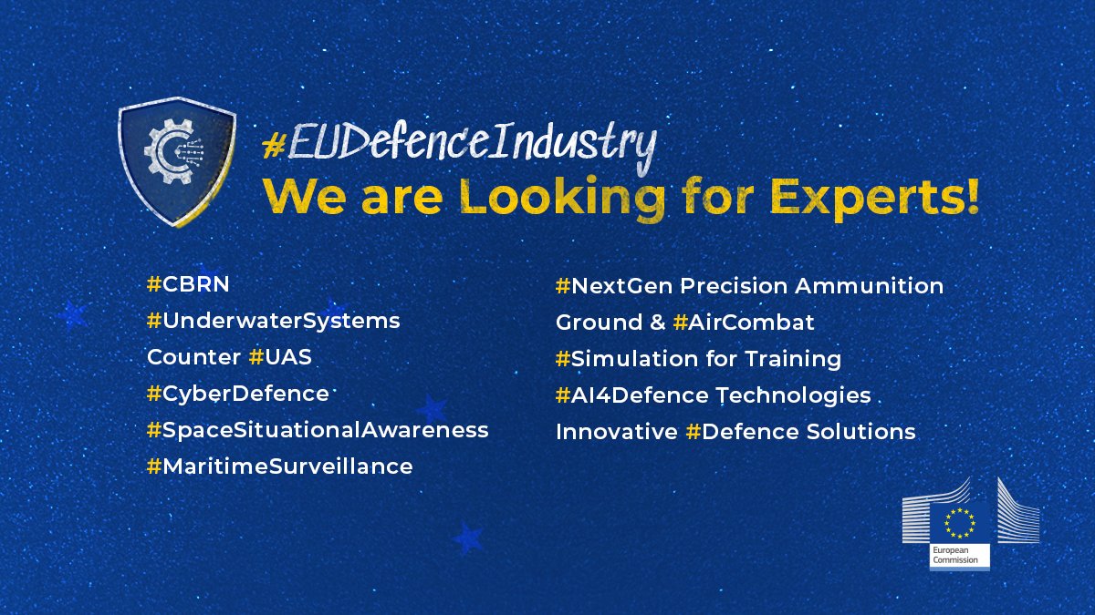 We are looking for independent experts to evaluate the proposals for the European Defence Industrial Development Programme #EDIDP If you're an expert in any field listed in the image, please see more info & register here: http://edefis.eu/EDIDP-Expert-Call …pic.twitter.com/5XCwDe7OoV