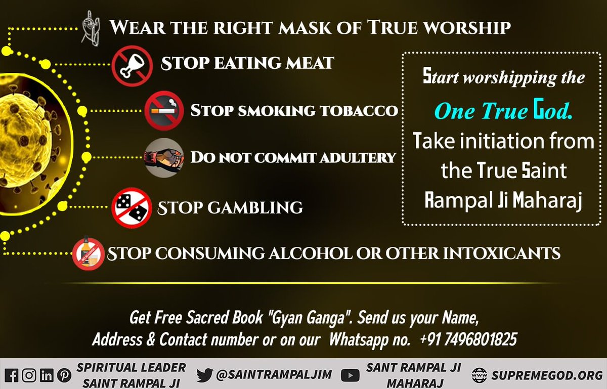 #NoMeat_NoCoronaVirus पूर्ण प्रभु कबीर परमेश्वर हैं, जो सभी आत्माओं के पिता है, जो व्यक्ति मांस और शराब और तंबाकू का सेवन करता है, वह पापी आत्मा है, उसको काल के लोक के में घोर दंड दिया जाता है, जानने के लिए आप पुस्तको डाउनलोड करके पढ़ें Coronaviruspic.twitter.com/UIYOTuL1k2