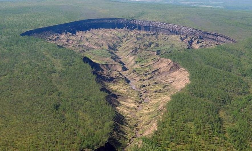 Warmer temperatures are melting permafrost in Siberia, opening up large craters where previously frozen ground collapses under its weight.pic.twitter.com/JUoGR1yOPf