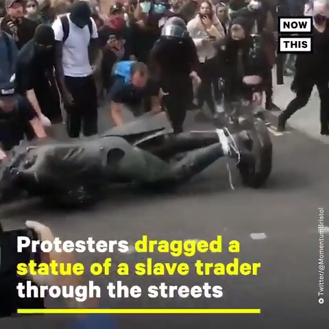 UK Protesters Drag Statue Of Slave Trader Into RiverProtesters dragged this statue of a slave trader through the streets of Bristol and into the riverThanks. Twitter will use this to make your timeline better. UndoUndo -