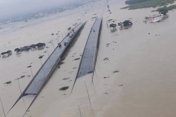 @satyanadella@BradSmi magnitude of floods in#Chennai, this pics sums it up pretty well. This is a pic of a flyover taken from IAF chopper
