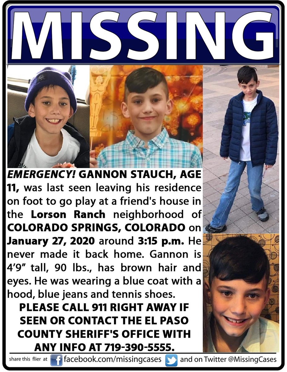 #GannonStauch#FindGannon Emergency!#Missing#Colorado boy! Last seen leaving home to a friends house Jan 27 in#ColoradoSprings#CO Call El Paso Co Sheriff's Office with any info 7195206666#Broncos#BroncosNation#DenverBroncos#BroncosCountrypic.twitter.com/m7596ctOXq