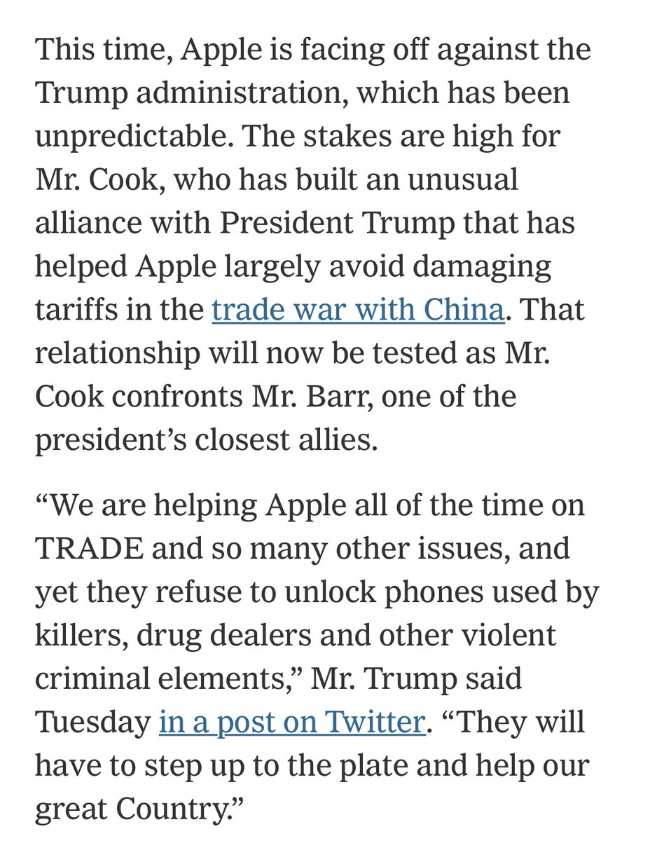This is what political scientists refer to as “clientelism,” and it’s a common feature of authoritarian governments. https://www.nytimes.com/2020/01/14/technology/apple-iphone-pensacola-shooting.html#click=https://t.co/5EB2UMHCQB …pic.twitter.com/wdEmZU7Kp2