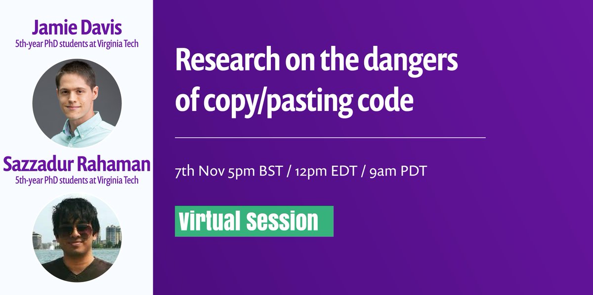 @TheDavisJam and@sazzad_14 will talk about the potential hazards of copy/pasting crypto and regexes into your software.