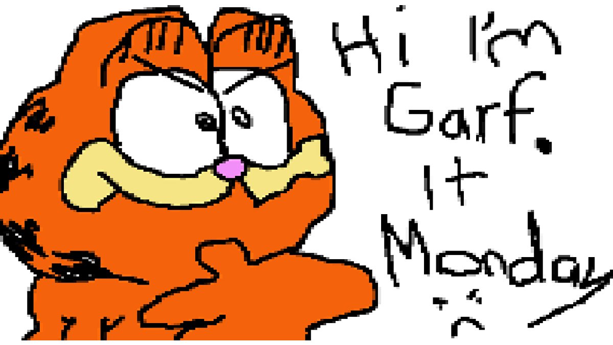 ♫ Happy Monday to you Happy Monday to You Garfield, Garfield, Garfield, Garfield! Happy Monday to you. ♫