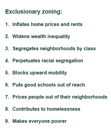 There are more than nine reasons why we should abolish exclusionary zoning, but these nine cover the most egregious direct harms that hit lower-income people hardest. https://www.sightline.org/2021/09/29/nine-reasons-to-end-exclusionary-zoning/ …pic.twitter.com/W2EdP9MzOb