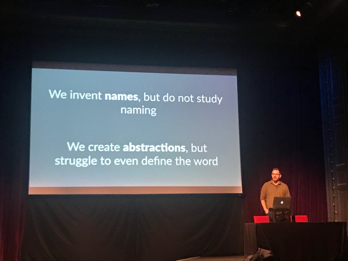 We invent names, but do not study naming. We create abstractions, but struggle to define the word — @ztellman #clojuresyncpic.twitter.com/ffqFnl3MEL