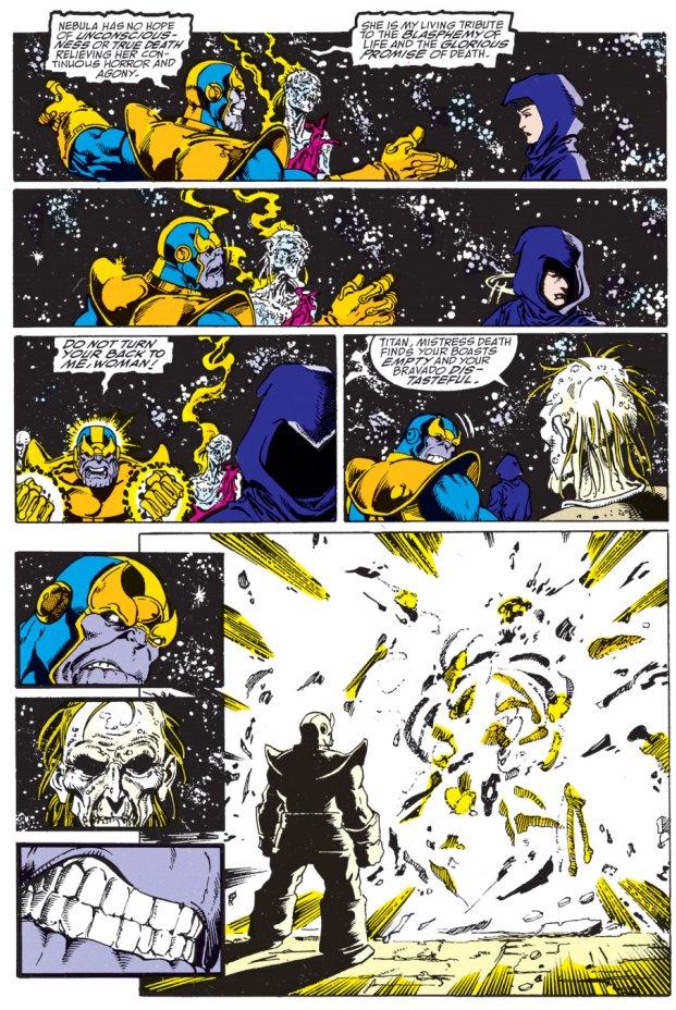 Well yeah. Also needs a fedora painted on. Deadpool is Thanos' "chad" and Death his "stacy". This approach of writing thanos language as "proper' despite his actions is problematic to me. I'm imagining the writers back then thinking this alluded to a balanced/aspirational villain
