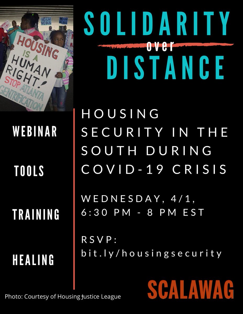 2nd Webinar in our series Solidarity over Distance this Wednesday 6:30 PM EST. We'll be covering rent freezes, rent strikes, eviction moratoriums, mortgages and taxes, and legal protections. http://bit.ly/housingsecurity pic.twitter.com/nbtTMn6KY3