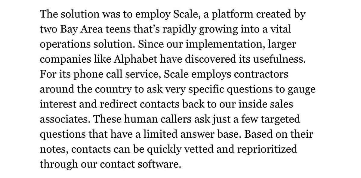 @scaleAPI, per@daniel_levine, is about "two themes we love: APX and Productized AI."https://medium.com/@wtbm/scale-ceb24ddc9c5b …Thanks. Twitter will use this to make your timeline better. Undo -