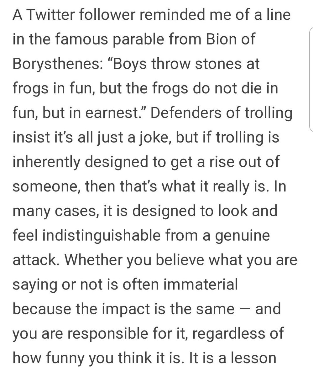 "...the frogs do not die in fun, but in earnest." https://twitter.com/PeterCorless/status/1025138904121266176?s=19 …pic.twitter.com/nWJZPg940x