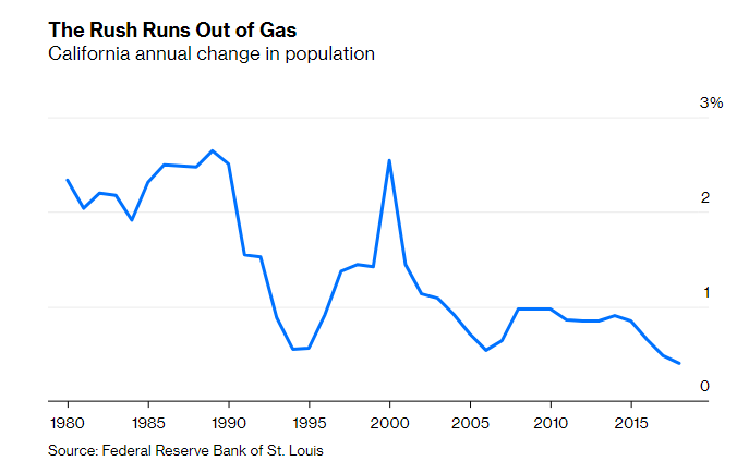 California's population growth is trickling off, and may soon go negative. https://www.bloomberg.com/opinion/articles/2019-10-17/california-is-back-on-the-brink-of-being-a-failed-state …