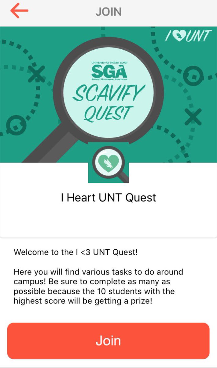 @Scavify Quest is live! Download the app here: https://appsto.re/us/vzXQV.i (iOS) and join the fun! Search "I Heart UNT" in the app.pic.twitter.com/3HokIUCrLt