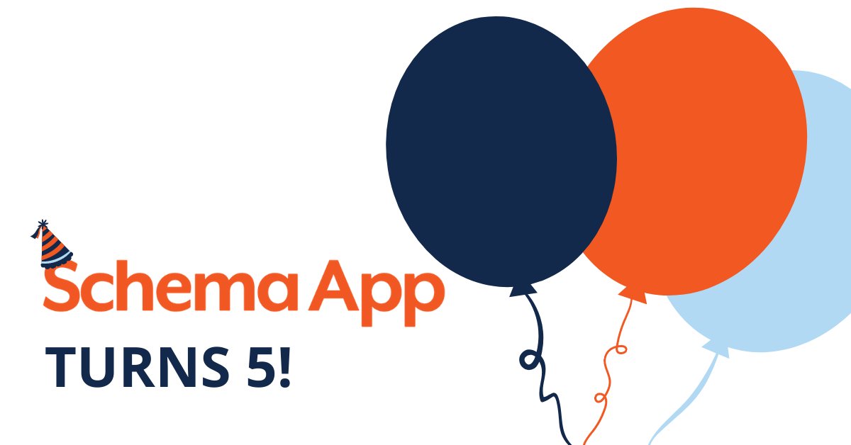 Happy 5th birthday, Schema App! Thank you for being a part of our journey. We look forward to another 5 years of growing and learning together.pic.twitter.com/Yn5US9zdYB