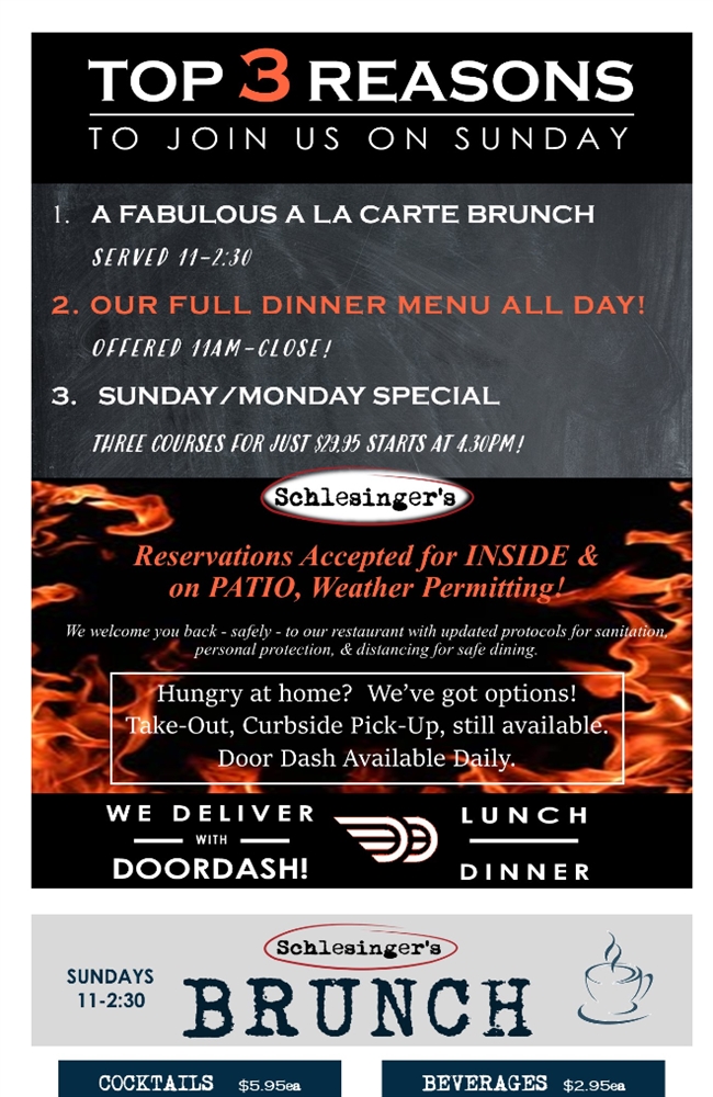SUNDAY is SPECIAL at SCHLESINGER'S https://bit.ly/39m8J9F pic.twitter.com/QniY4J6wSV