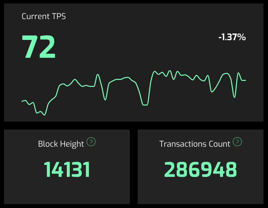 A similar network saw Ø transaction rates of 9k TPS with max bursts up to 60k TPS