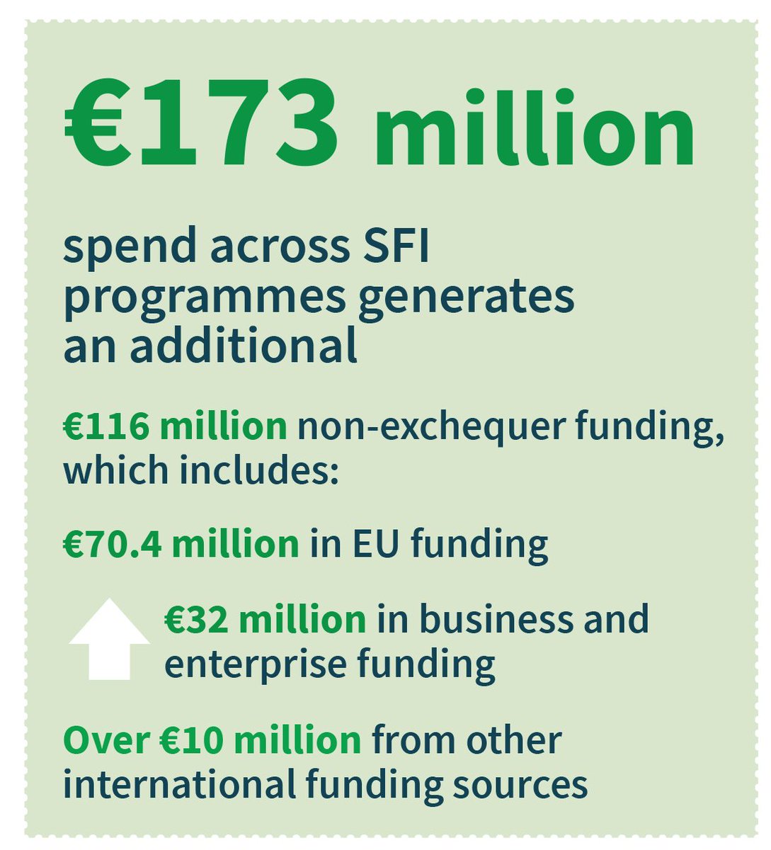 Government investment of €173 million in research programmes in 2017 generated an additional €116 million from non-exchequer funding from the EU, private enterprise and international bodies.