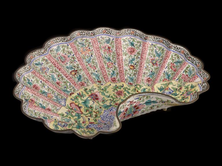 Fluted and shaped like a shell, this bright shaving bowl was made in Canton, China around 1850-1900 and is now on display in our