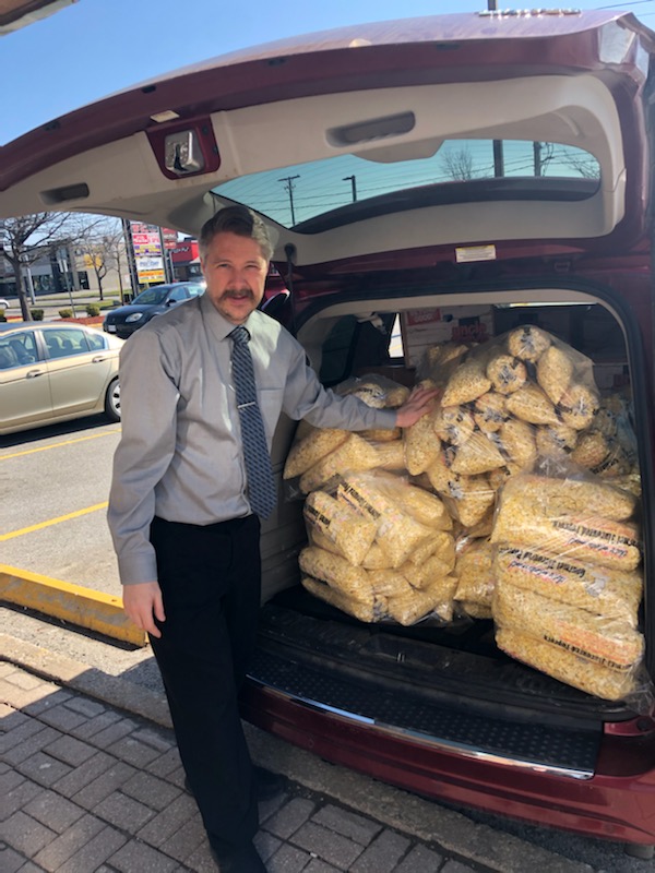 Normally our popcorn is too good to give away, but today we brought 100 bags to Community Care!