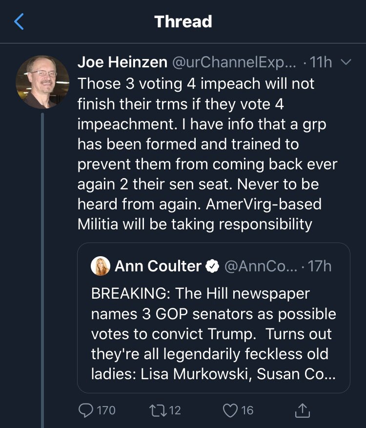 BREAKING NEWS: Trump Supporters Begin Making Public Assassination Threats Against GOP Senators Reportedly Open to Impeachmenthttps://twitter.com/travisakers/status/1203741466461388807 …