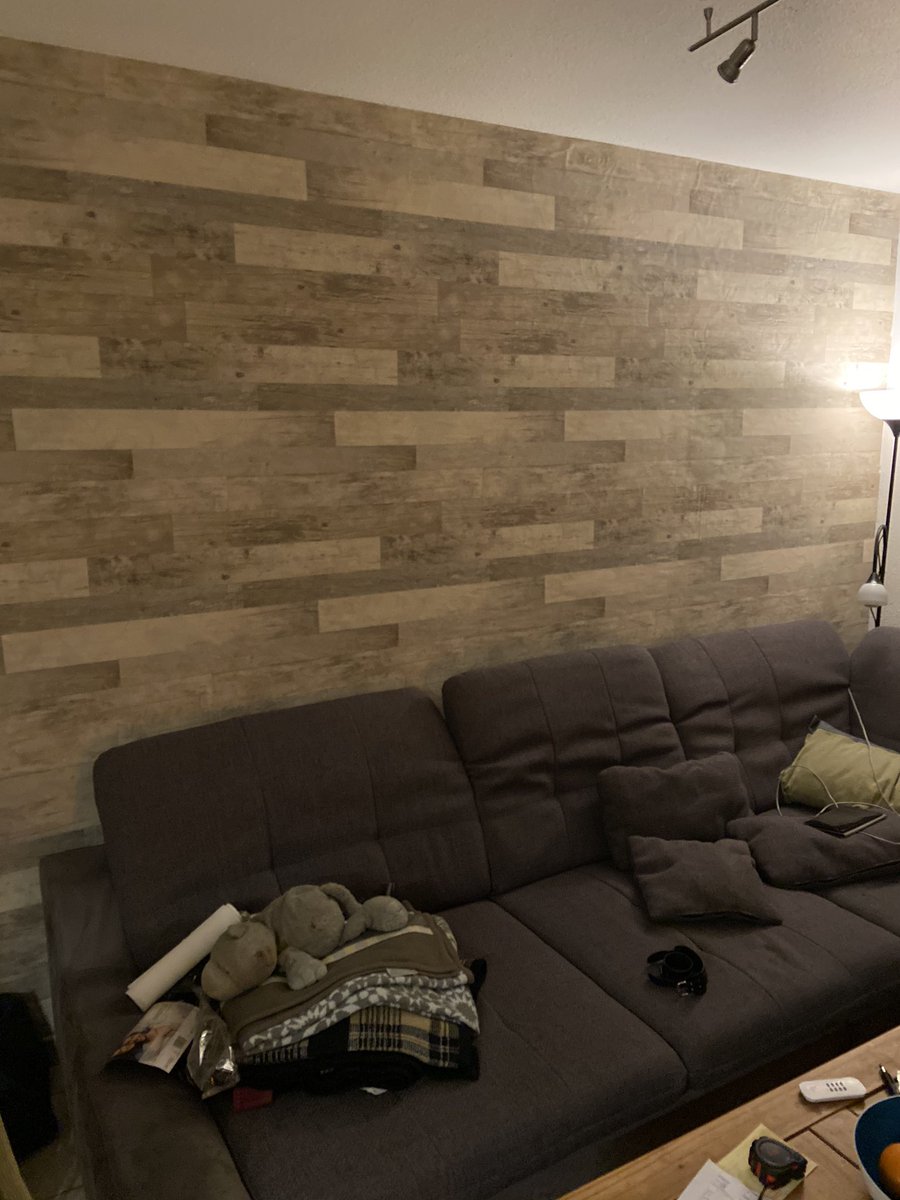So aus eine Blumentapete in grün wurde jetzt Holzoptik was soll man auch sonst machen wenn man frei hat.