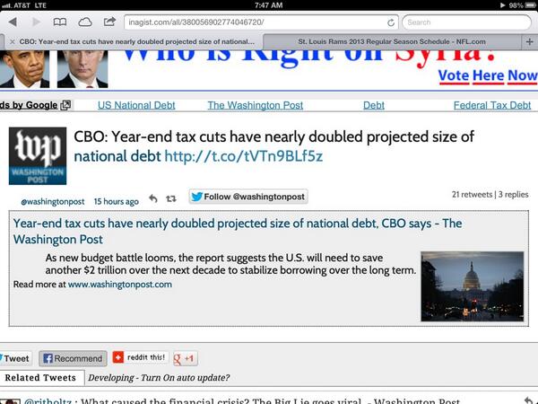 Interesting editing process by WaPo. Article on debt/deficit morphs into one on shutdown/Obamacare overnight. Old:pic.twitter.com/P9pHe89nVG