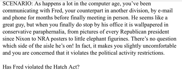 Nice little question from a mandatory federal govt ethics training course. Fred seems like such a great guy, but...pic.twitter.com/rE0m7HTPQr