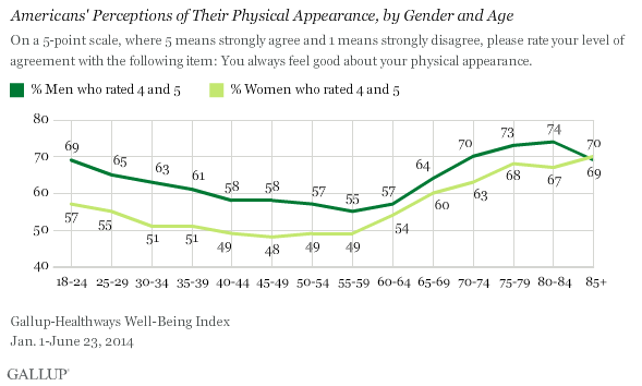 No one is more confident about his/her appearance than the 70+ set. Maybe standards are different then. REhttps://twitter.com/JustinWolfers/status/487202606910279680 …