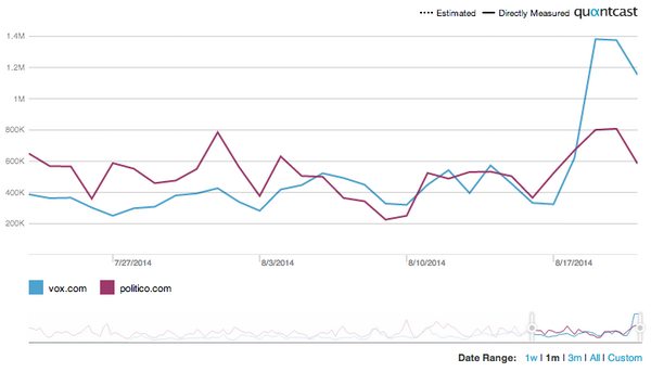 Strangely not mentioned in @DylanByers piece: Quantcast has Vox passing Politico in uniques this month.pic.twitter.com/opBLRReg3N