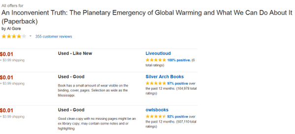 GRAPHIC: The market price of Al Gore's book "Inconvenient Truth" on Amazon? $0.01pic.twitter.com/GwOmnVtBXZ