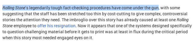 Has anyone ever said this about Rolling Stone? “legendarily tough fact checking procedures”?pic.twitter.com/Y51oXZlqnB