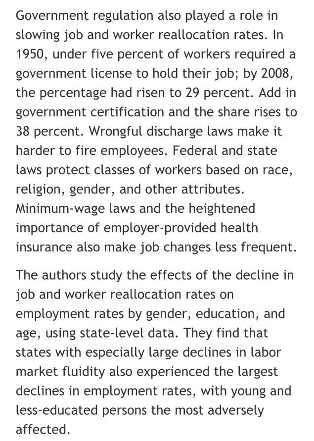 Paper: govt regulation hurts labor market fluidity, which hurts employment http://economistsview.typepad.com/economistsview/2015/01/the-link-between-high-employment-and-labor-market-fluidity.html …pic.twitter.com/NEhTb7TwF1