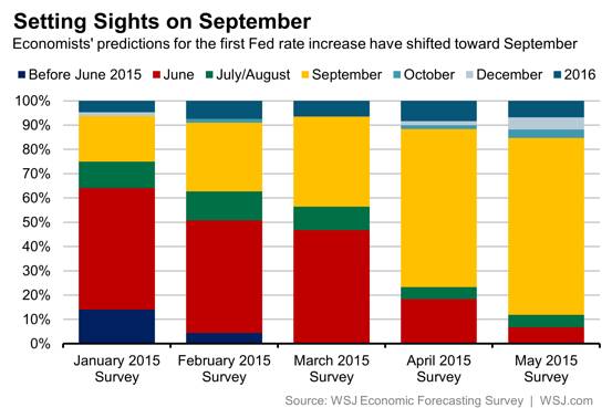 Nearly 3 in 4 economists think the Fed will begin raising rates in September http://on.wsj.com/1e45KnG  pic.twitter.com/n4zkVVzjSl