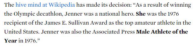 Wikipedia on Jenner: She was the top male athlete of 1976!