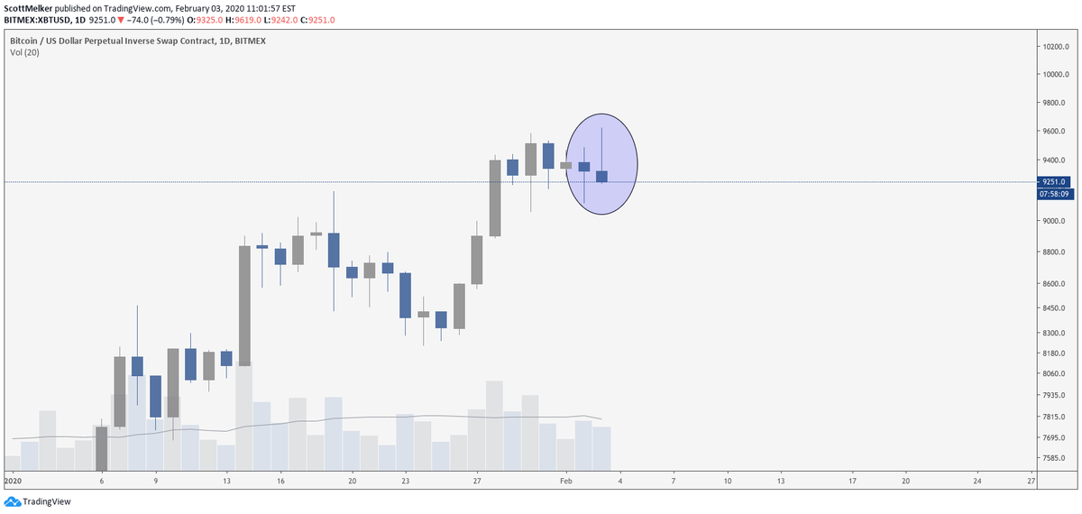 This is EXACTLY my take on the present candle (in a vacuum, if it closed as shown), for those of you who were wondering! I don't view the candle as a shooting star at a clear top, or an inverted hammer at a clear bottom.https://twitter.com/TXWestCapital/status/1224378661467557896?s=20 …