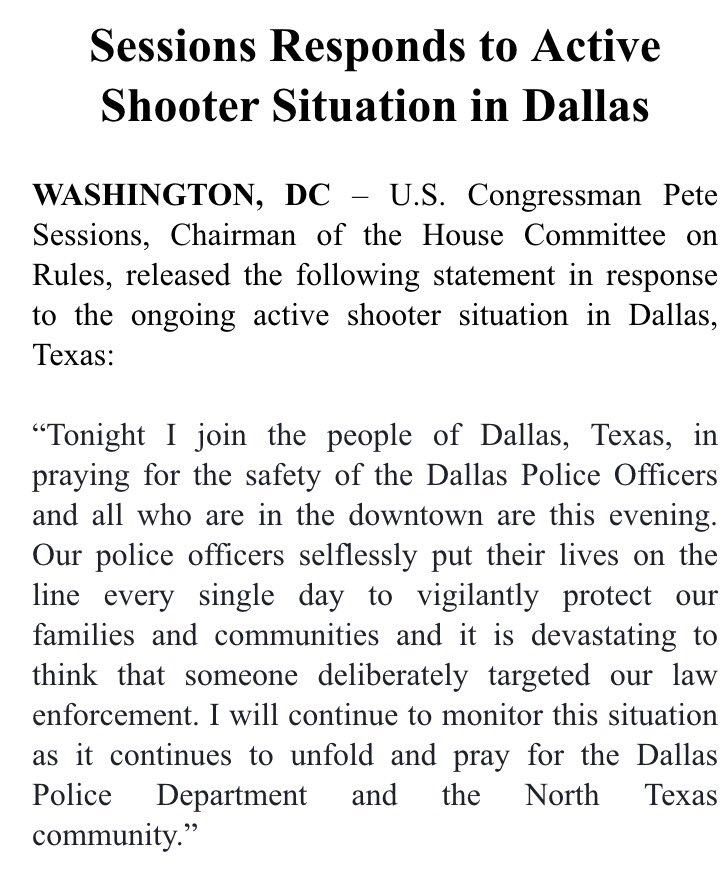 Statement from Rep. @PeteSessions, who represents parts of Dallaspic.twitter.com/JwjRRqREaC
