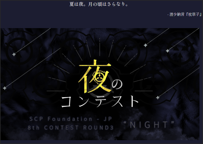 夏の重賞・夜のコンテストが開始されました 投稿期間:2021年7月26日0:00~2021年8月16日23:59 http://scp-jp.wikidot.com/yorucontest2021-hub …pic.twitter.com/sVAt6wvJJm