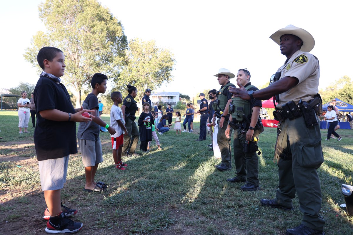 Promoting safety and community. works directly with the people we serve to continuously ensure their concerns are being heard and understood. Here is Undersheriff Kelly Martinez during in Spring Valley.