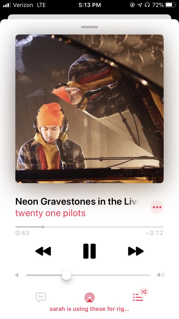 God is currently listening to “Tear in my heart” by twenty one pilots