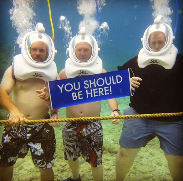 Just strolling along in St. Maarten ...in helmets...underwater...with fish.