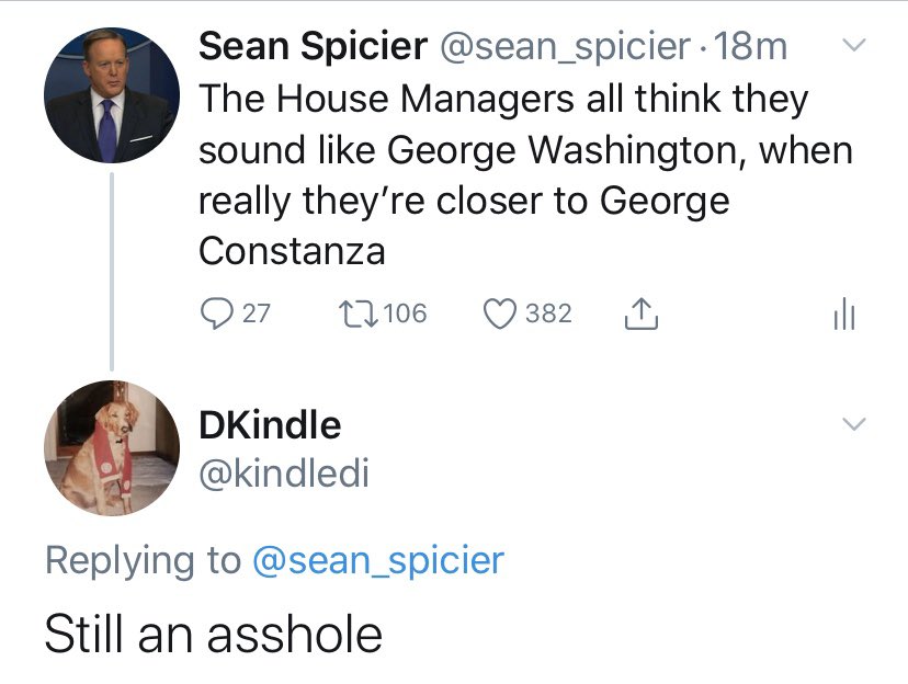The House Managers all think they sound like George Washington, when really they’re closer to George Constanza
