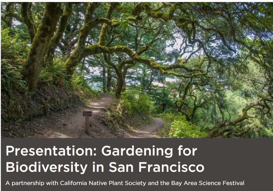 #SFPLlive at 1PM w CA Native Plant Society- Gardening for Biodiversity in San Francisco- one of our contributions to@BayAreaSciFest (10/21–10/25).#ScienceTogether#BASF2020 REG- https://bit.ly/2HzrBrb pic.twitter.com/B7a1G5m7Or
