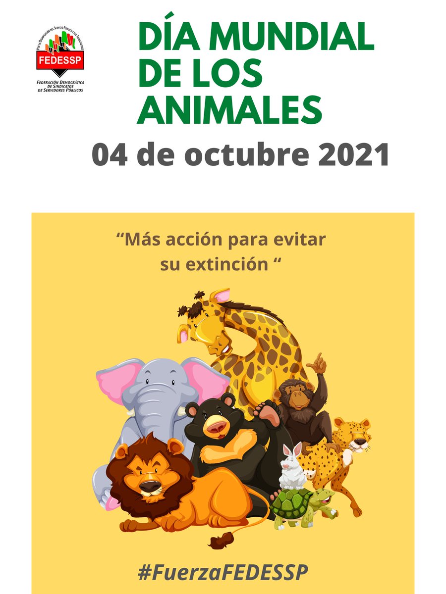 #4deoctubre se conmemora el#DíaMundialdelosAnimales, decretado en 1929 por la Organización Mundial de Protección Animal, a propósito de proteger a las especies en peligro de extinción.@agusaviles1@palomitarelowde@valenzo14@marudavalos29#FuerzaFEDESSP#HabitatDay pic.twitter.com/2uOm0KisnH