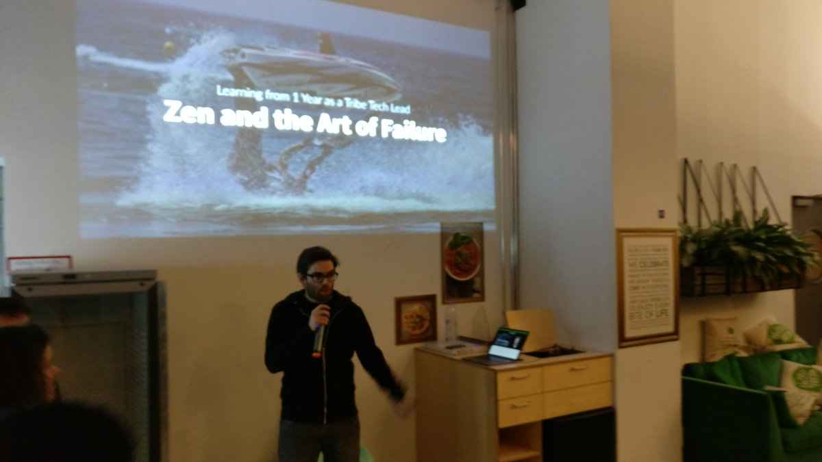 #geekFriday of 2018,@prla is continuing his talk from last time on failure, learnings, time management, and growing into a successful tech lead role. "Zen and the art of providing free snacks to attract a large audience"pic.twitter.com/NEEMWIraRn