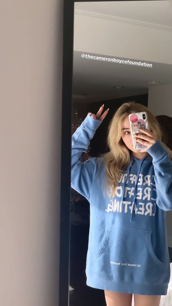|@SabrinaAnnLynn via Instagram Stories: Sabrina wearing the sweatshirt from the new "The Cameron Boyce Foundation" collection. pic.twitter.com/MC6O3eBTHz