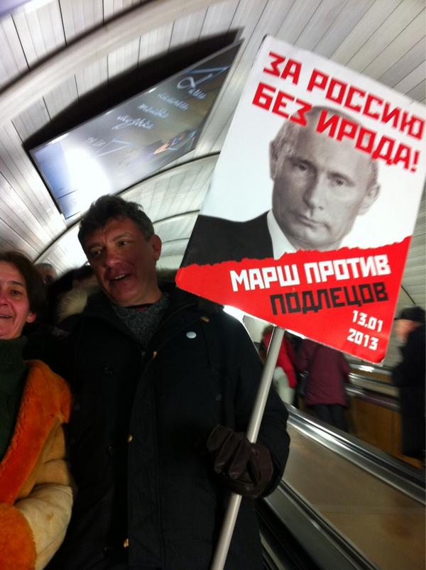 #Немцов#история#МаршПротивПодлецов 13 января 2013 года. Москва. Марш против подлецов.Борис Ефимович все просил отследить, чтобы ему обязательно именно этот плакат достался pic.twitter.com/yX10ow9ScJ